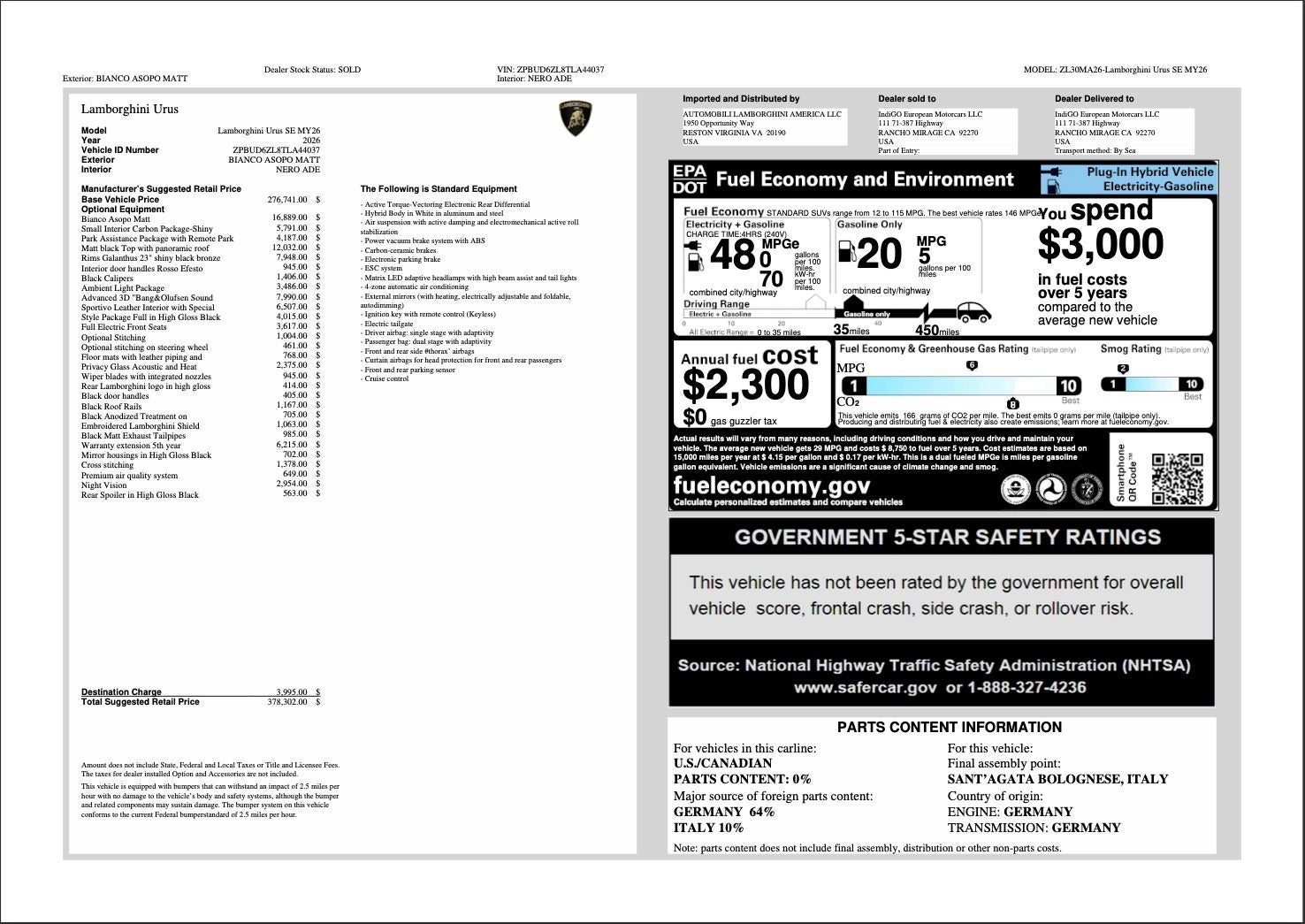 $378,302 Dealer’s Price