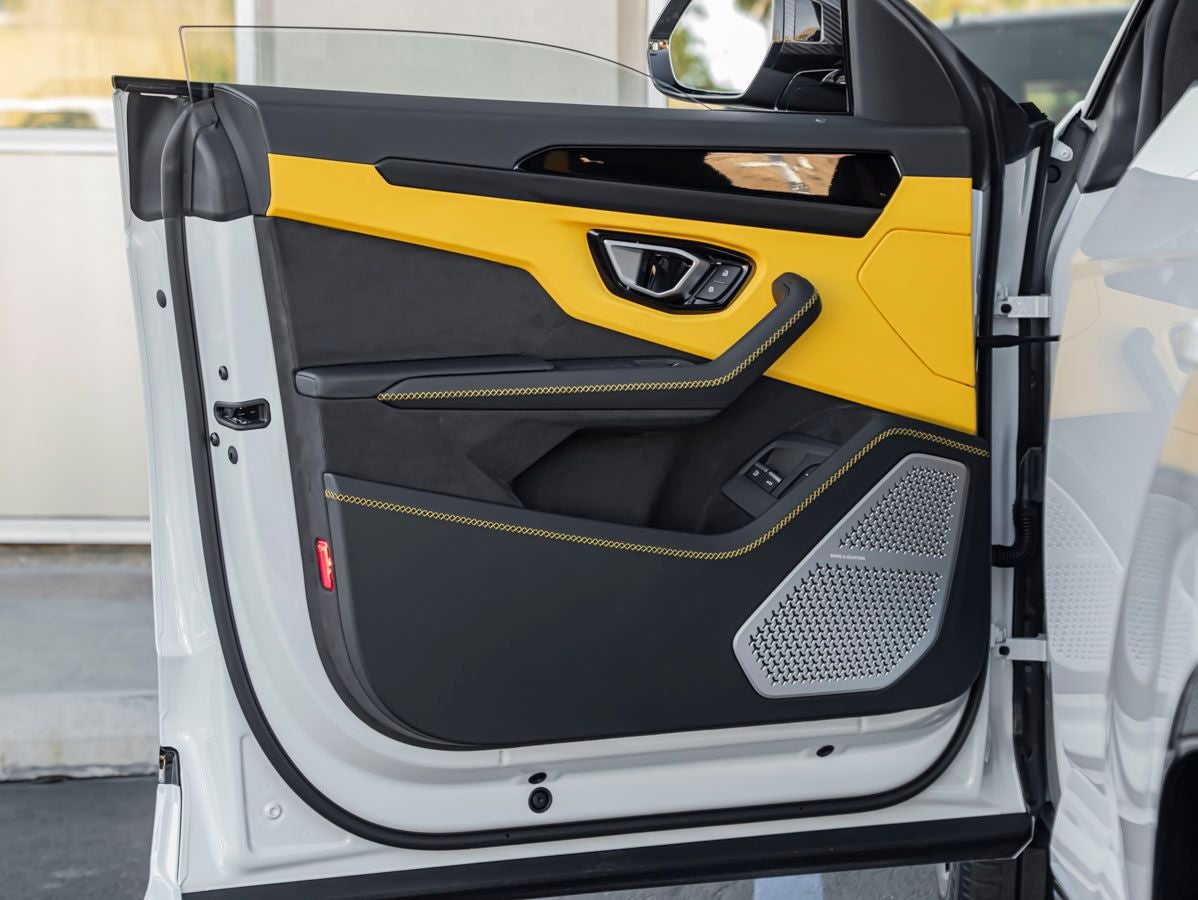 Step inside and the Bicolor Leather Interior with Nero Ade / Giallo Taurus envelops you in modern Italian craftsmanship. Details such as Contrast Stitching, Embroidered Lamborghini Shield, and Seat Belts in Giallo Taurus elevate the cabins bespoke feel. The Full Electric Front Seats, Floor Mats with Leather Piping, and Performante Leather Seats ensure both comfort and sportiness, while the Advanced 3D Bang and Olufsen Sound System delivers an immersive audio experience.