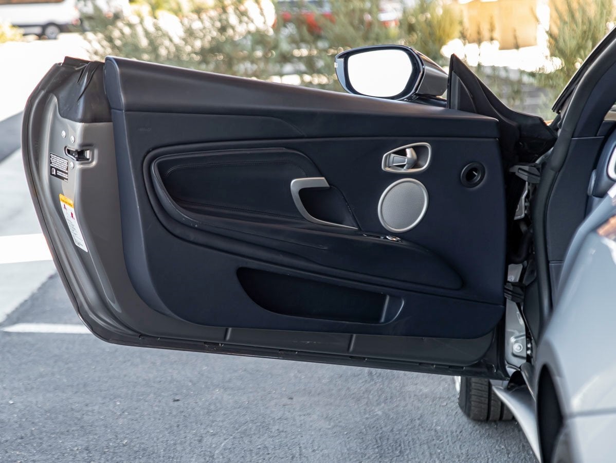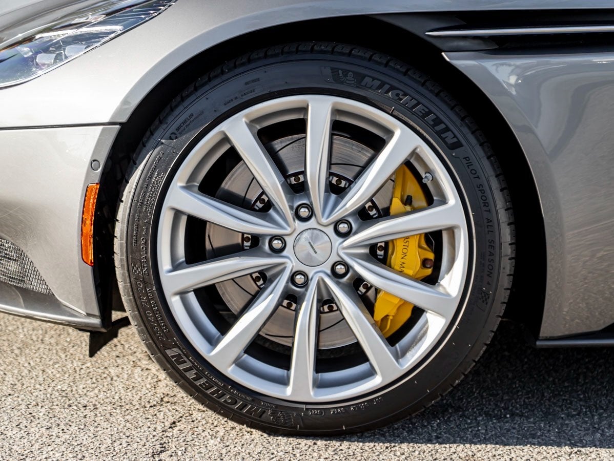 The DB11 V8 Volante exudes elegance and athleticism from every angle. Its sculpted lines flow seamlessly under the shimmering Hammerhead Silver finisha contemporary color that perfectly accentuates its aerodynamic silhouette. The visual drama continues with Yellow Brake Calipers and Smoked Rear Lamps, adding a distinctive and dynamic contrast. This examples Contemporary Paint specification enhances its exclusivity, while subtle details showcase Aston Martins dedication to design perfection.