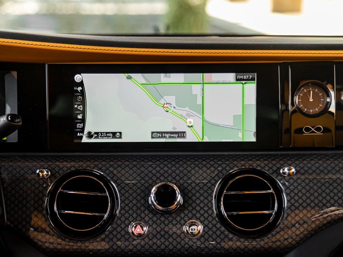 Exquisite details abound, including Contrast Seat Piping in Black, RR Monogram to All Headrests in Black, and RR Embossed on Doors, each reflecting the meticulous artistry synonymous with Rolls-Royce. The Extended Veneer in High Gloss, Instrument Panel with Inner Stitch, and Bespoke Interior Module Editing further showcase the brands commitment to tailored perfection and contemporary elegance.