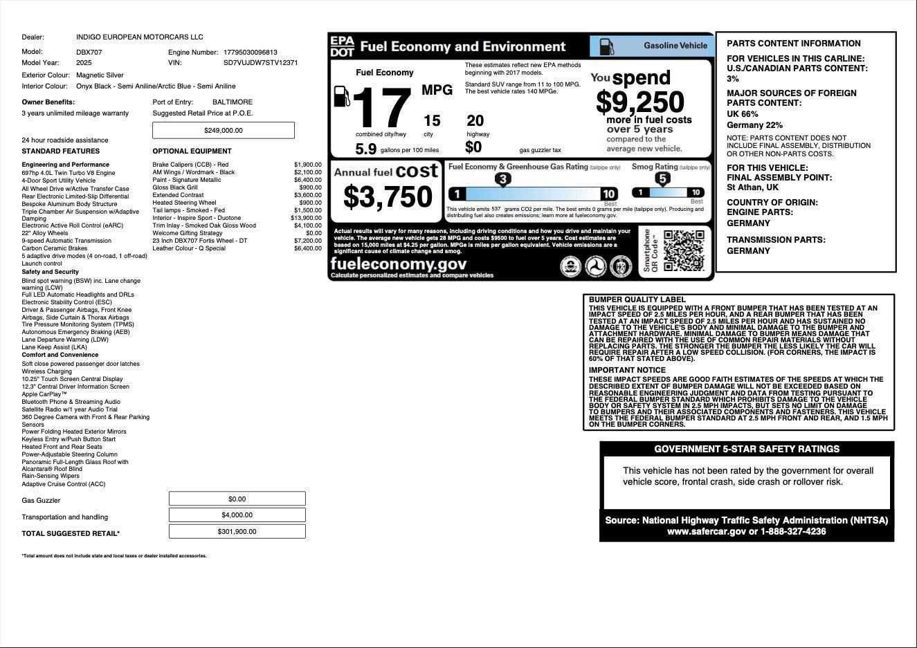 • Smoked Oak Gloss Wood Inlay: A touch of elegance that elevates the DBX 707s already opulent cabin.