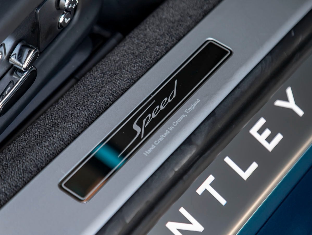 Inside, the cabin showcases the finest Bentley craftsmanship. The flowing Topaz Blue to Windsor Blue interior is elevated by the Indented Hide Headlining, Leather Specification, and plush Deep Pile Overmats - Front. The Dark Chrome Interior Specification adds a modern touch, while the Bentley Rotating Display offers a seamless blend of tradition and technology. The Front Seat Comfort Specification ensures ultimate relaxation, and the Naim for Bentley audio system delivers concert-level sound throughout the cabin.