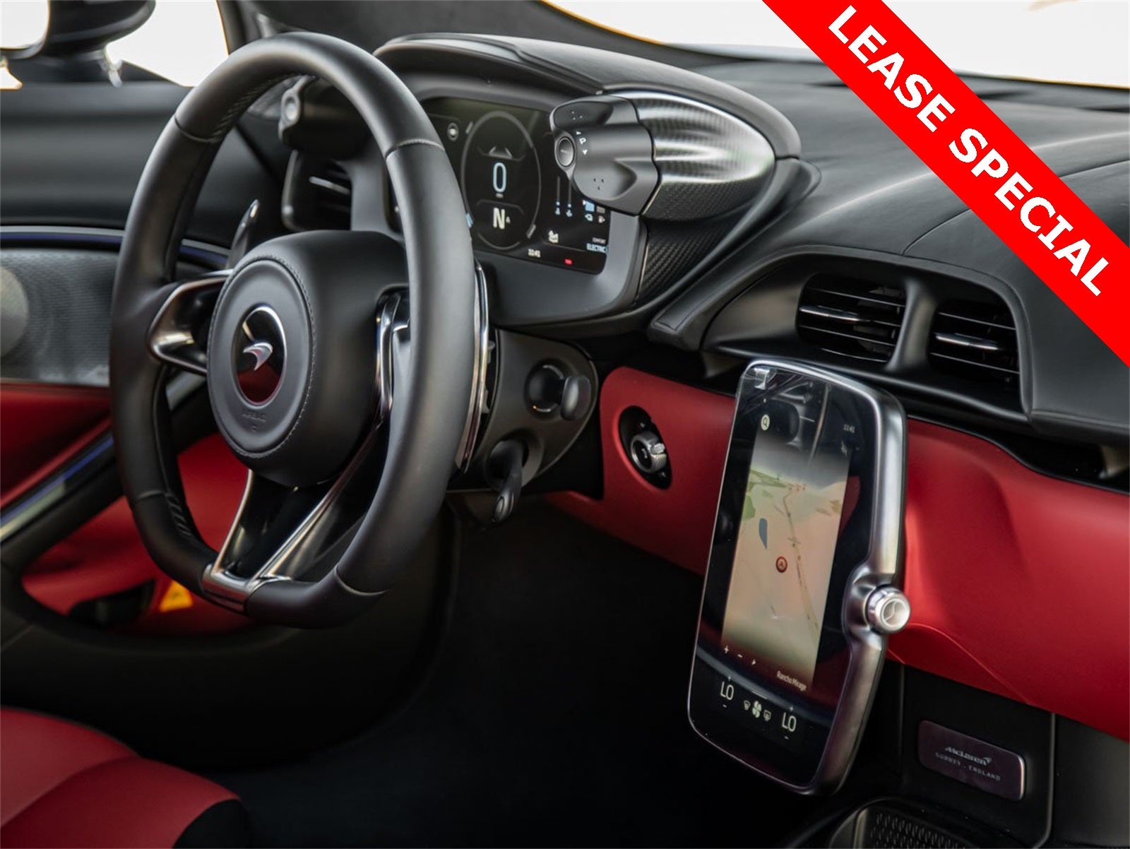 Step inside, and the Harissa Red interior greets you, exuding an air of luxury that only McLaren can deliver. The TechLux Spec and the Carbon Fibre Interior Pack punctuate the interior with a sporty flair and unparalleled sophistication. The racing-inspired seats, advanced infotainment system, and premium sound system speak to a bespoke level of craftsmanship and high-performance aesthetics.