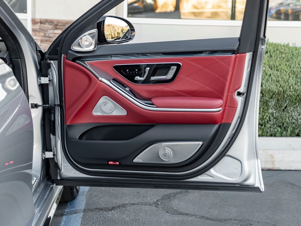 Finished in elegant Cirrus Silver Metallic, this S63 E AMG commands attention with a refined yet athletic presence. Its striking exterior is enhanced by the AMG Night Package, 21 AMG Forged Multi-Spoke Wheels in Black, and bold Red AMG Brake Calipers, creating a dramatic contrast that underscores its high-performance pedigree. Exclusive details such as the AMG Fuel Cap in Silver Chrome and AMG Animated Logo Projectors add a touch of theater and distinction from the moment you approach.